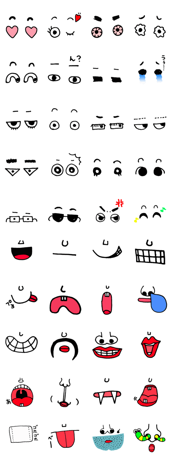 顔を上下に分けて様々な表情を作れるスタンプを作りました。色々な感情を組み合わせてあなただけのオリジナルのスタンプを使って会話を盛り上げよう!