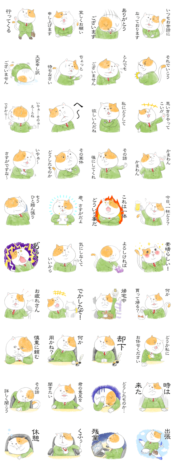 真面目で頼れる男、部長の猫斑です。丁寧なご挨拶や、ちょっとしたビジネスシーンにもお使いいただけます。