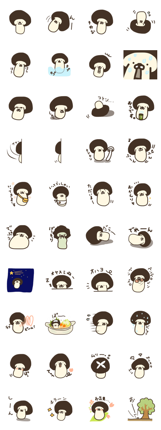 椎茸のようで犬のよう、その名も「しいた犬」。 椎茸好きで犬好きな方に捧げるゆるーいスタンプです。