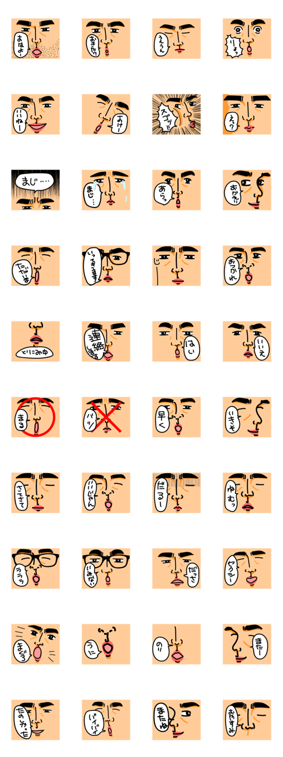 顔だけでのスタンプです。日常でよく使うワードがたくさん。
