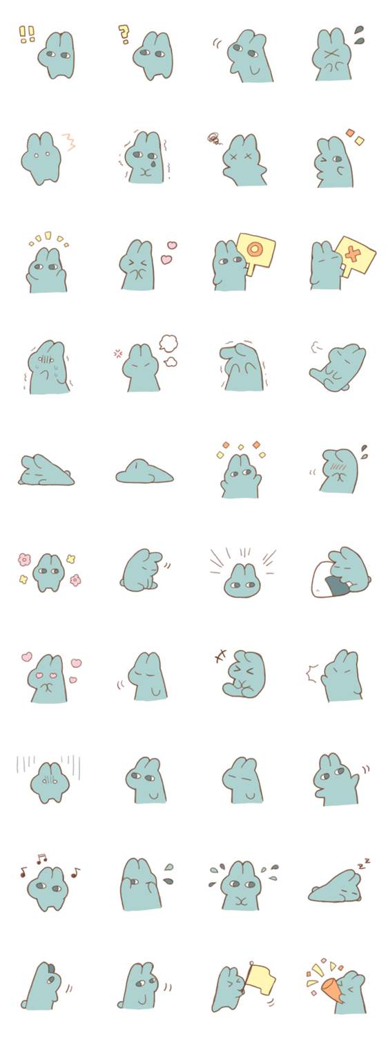 青いうさぎのライトマンズのいろんな表情を集めたスタンプです♪