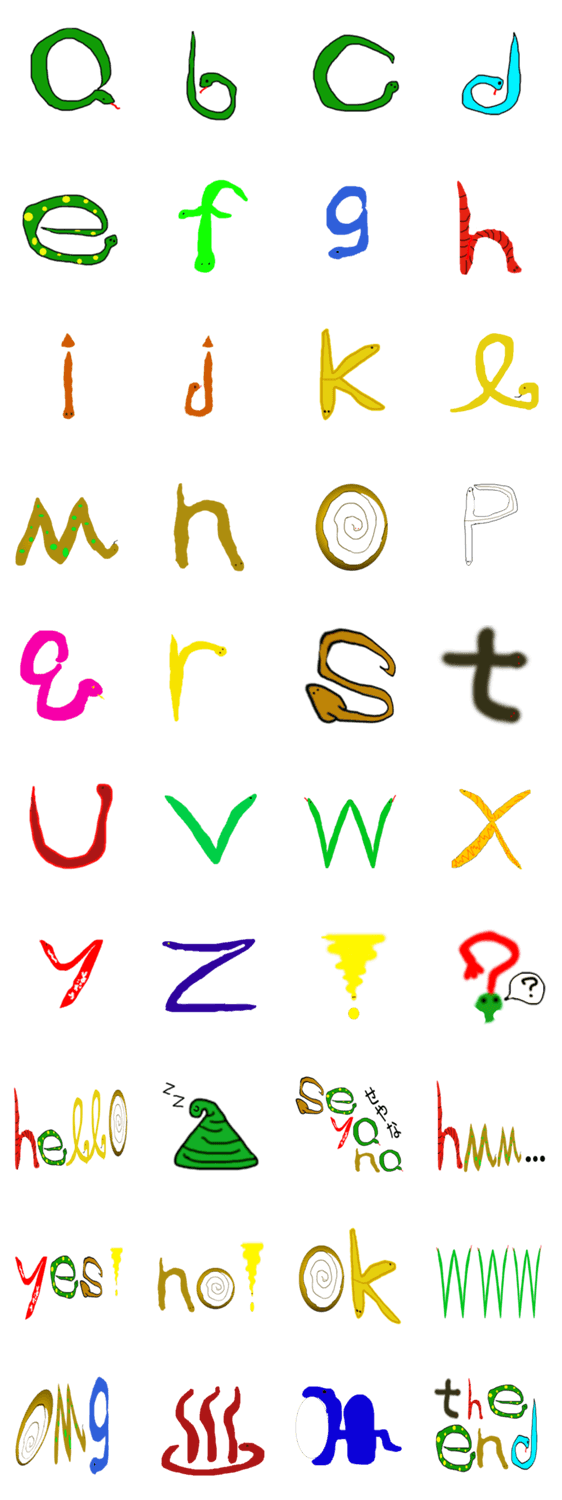 かわいいヘビたちがアルファベットや意味のあるジェスチャーをしているぞ。 それらを組み合わせて色々な文章を作ったり、みんなで協力して文字を組み合わせて楽しもう。