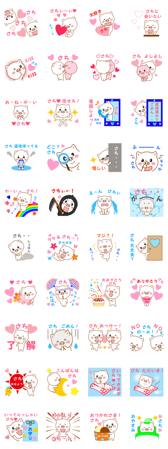 大好きな「さち」に送るためのお名前スタンプ。さちこ、さちえ、さちさんなどへ♡カップル・彼氏と彼女・友達、家族でどうぞ!さちが使うことも可能