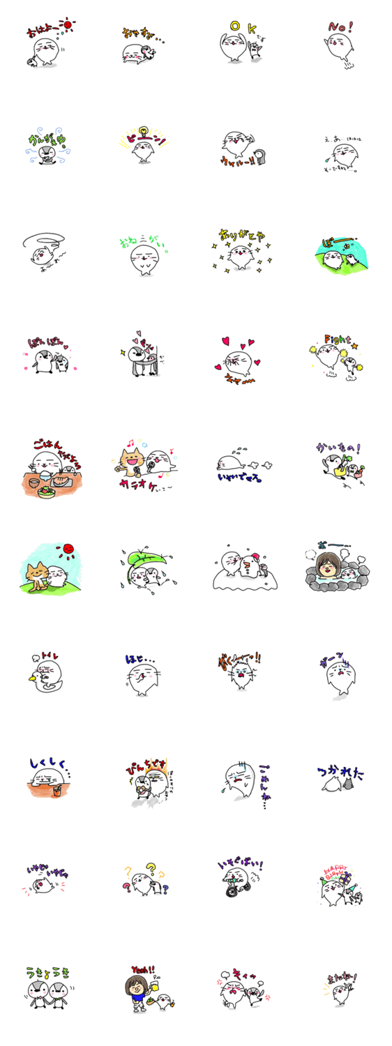 アザラシのぽくのすけと、お友達の日常スタンプ。毎日のほほんと過ごしてる、ぽくのすけたち。