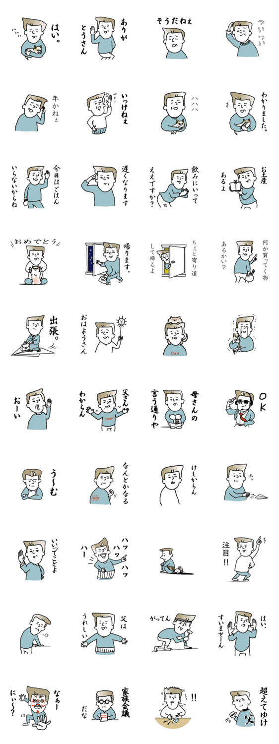 すべてのお父様方、家族とのコミュニケーションにぜひお使いください。スタンプ家族で仲良し家族!!!