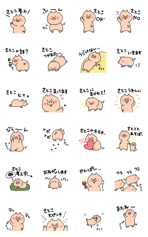 全国のさとこちゃんのためのスタンプです。 豚さんが好きな智子さん、里子さん、理子さんぜひ使ってくださいね!