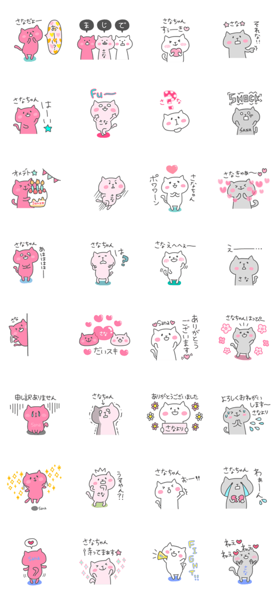 全国のさなちゃんに贈る、名前スタンプです。さなえちゃん、さなこちゃんも使ってね。リクエストありがとうございました。