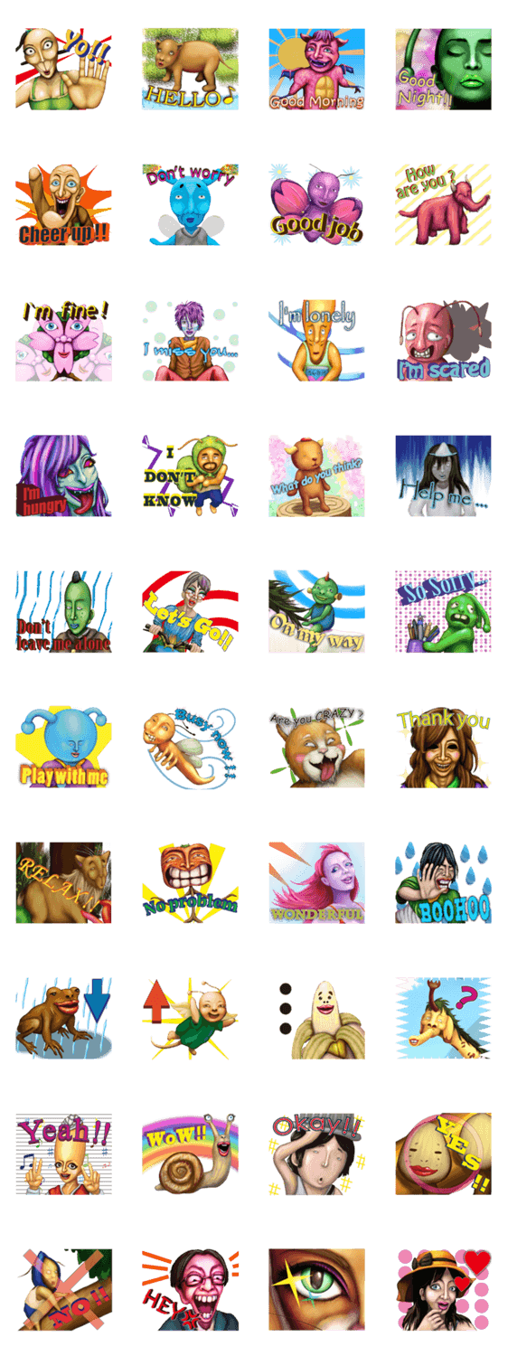 まうすがが生み出す奇妙なキャラクターによる使えるセリフ付きスタンプ第2弾。前回の作風とは異なるリアルな質感にパワーアップ!!