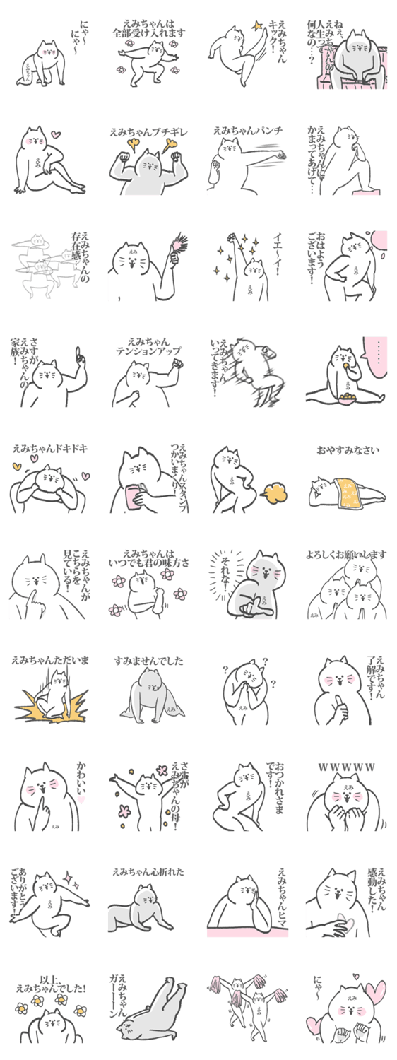 あだ名が[えみちゃん][エミちゃん]の人が使うと楽しい名前スタンプです。えみこ,えみり,えみる,えみか,さん用の名前スタンプです。キャラがうざくて笑えます!
