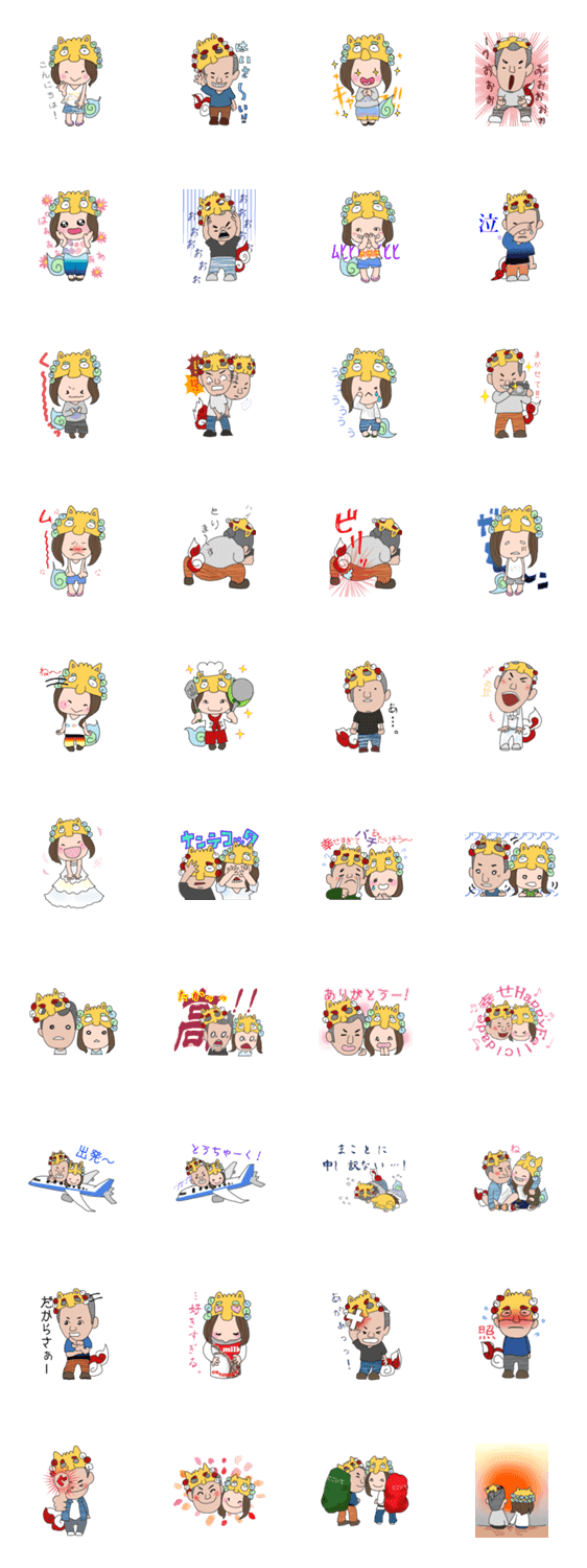 世界一周でウェディングフォト!に挑戦している「旅するにこいち」のお二人が、スタンプになりました!旅する時に使えるand沖縄っぽさも満載!ぜひぜひお使いください。