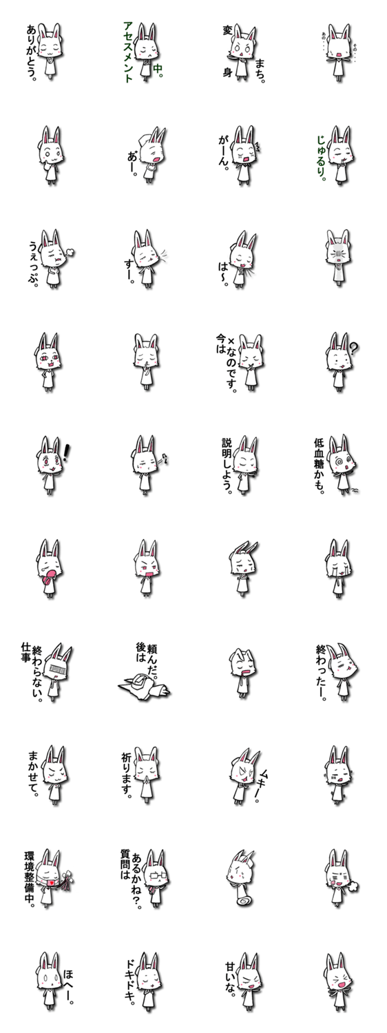 耳美は看護師としていつも忙しく仕事をしています。 そんな彼女に共感するナース達に使ってもらえるようなスタンプを作成しました。