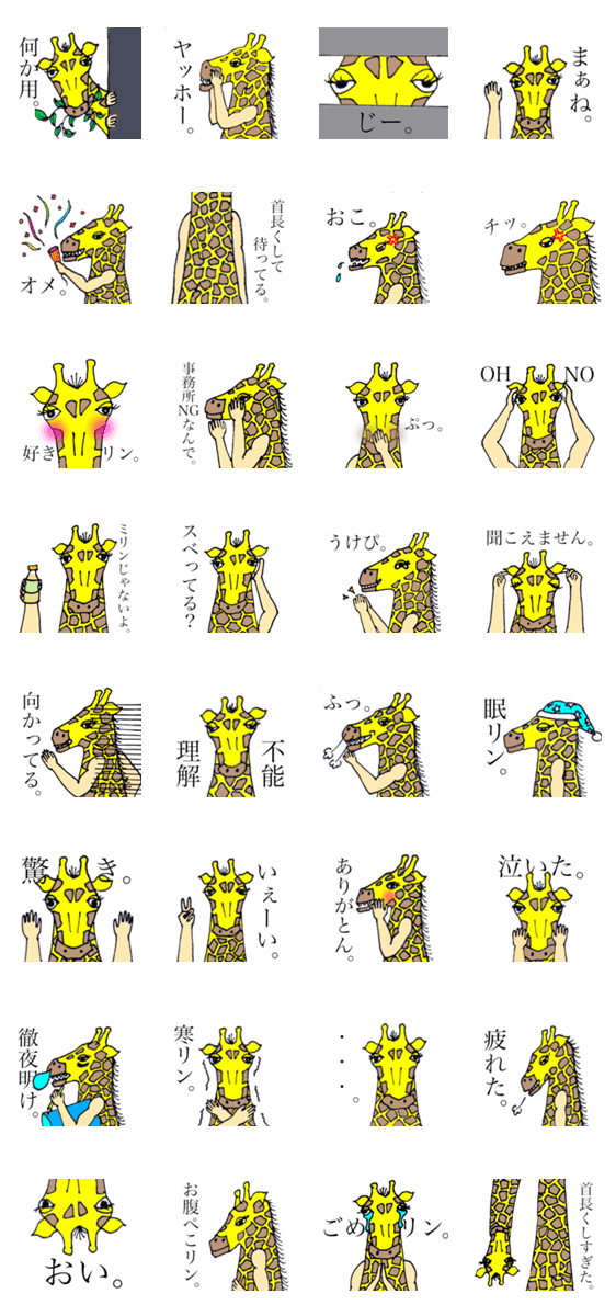なんだかシュール。ちょっとうざい。そんなキリンのスタンプです。きりん好きの方にはもってこい。買わなきゃ損だリン。