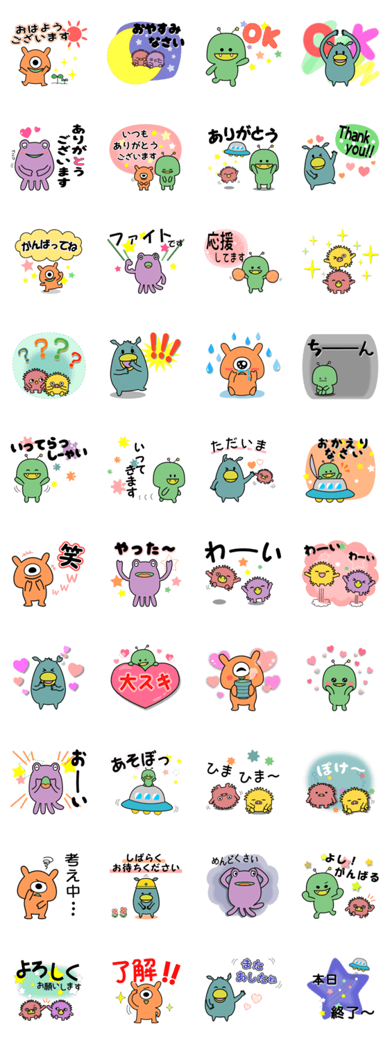 宇宙人の楽しいスタンプです。毎日の会話にどうぞ♪