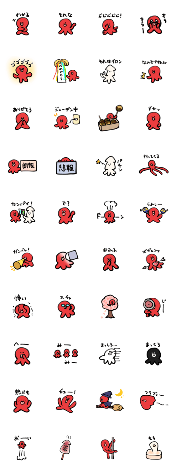 たこ時々いかのゆる〜いスタンプ第2弾です。