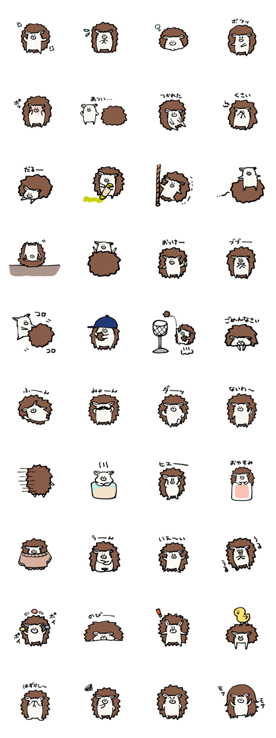 はりねずみさんすたんぷのゆる〜いスタンプです。