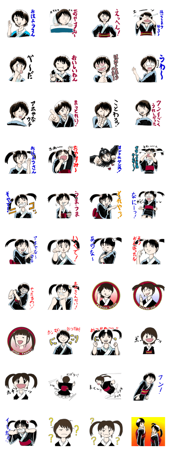 とし作Webコミック「鈴鹿の草子」と「鬼さんこちら!」の鈴鹿御前さんと鈴華さんのスタンプです。 表情豊かなお二人のスタンプをお楽しみくださいね。
