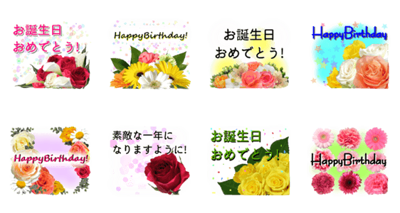 本物の花を添えて送る誕生日用のスタンプです。お誕生日おめでとう・Happy Birthday・素敵な一年になりますように! etc. 写真使用