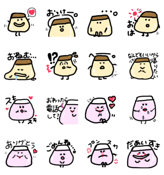 プリンくんとプリンくんに恋するいちごプリンちゃんのかわいいゆるスタンプ