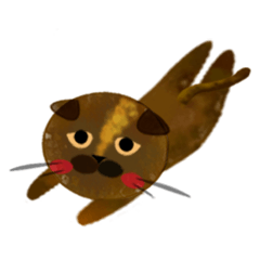 毛色がトーティ(さび猫)のスコティッシュフォールドが彩るスタンプ。おねだりや挨拶など、日常会話を愛着ある表情と動きで表現します。