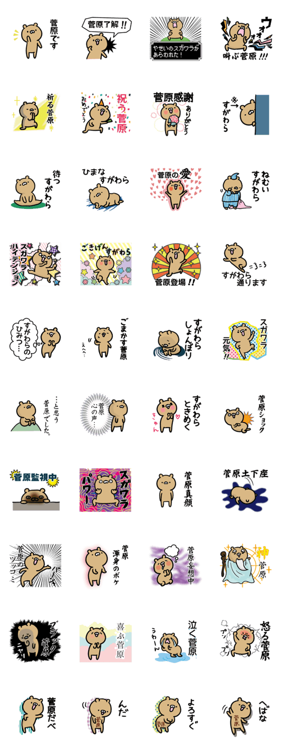 菅原さん専用のクマのスタンプです。名字がすがわらの方が使えます。少し東北弁もあります。
