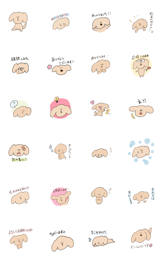 敬語を話すていねいな犬のいぬすけ。たまに茶色いわたあめと間違えられてしまいますが、トイプードルです。
