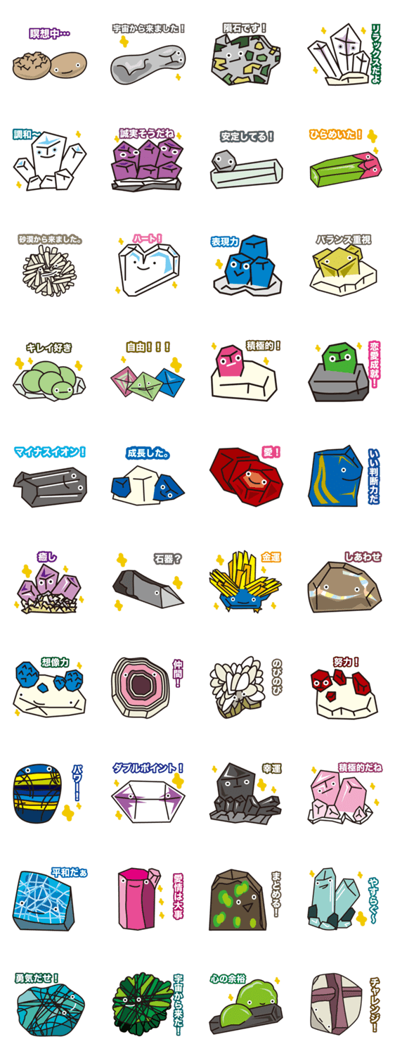 パワーストーンの原石をスタンプにしました。何の石か当てたり、石の効果で思いを伝えたり、誕生石の人に送るなど使い方はいろいろです。