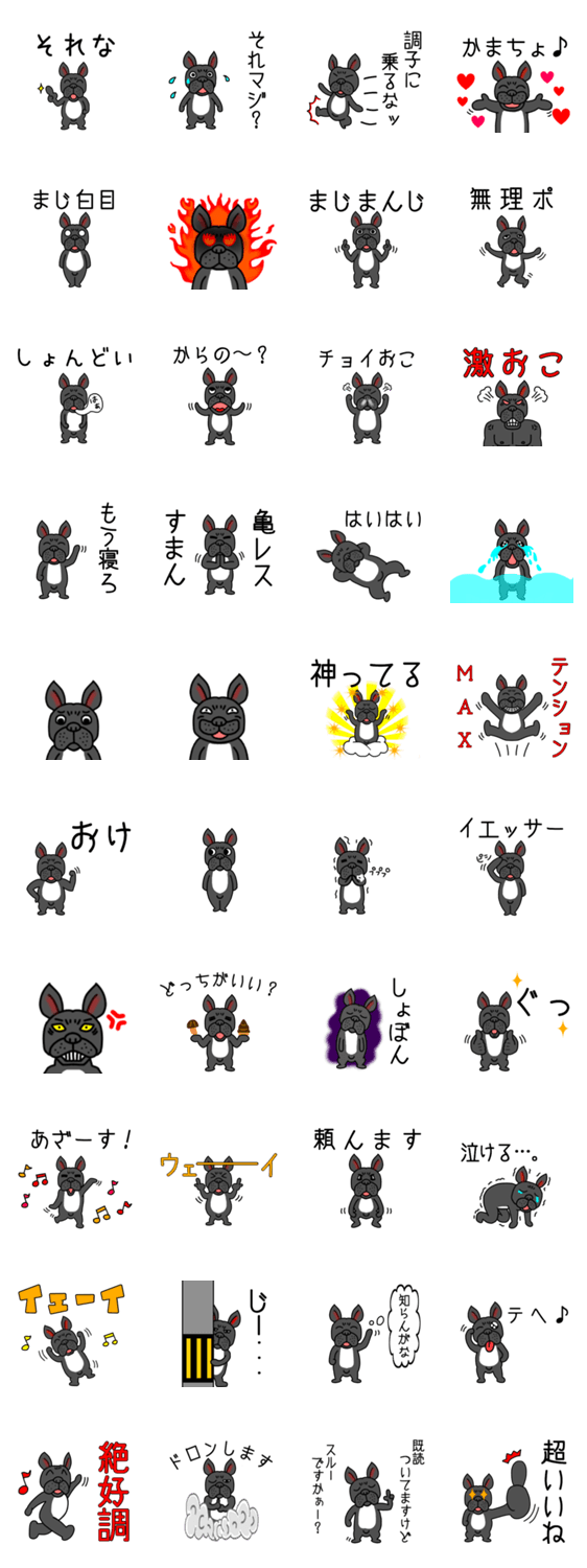 色んな表情をしたフレンチブル。今風の言葉でまとめてみました。今風ですが老若男女どなたでもお使いいただけます。