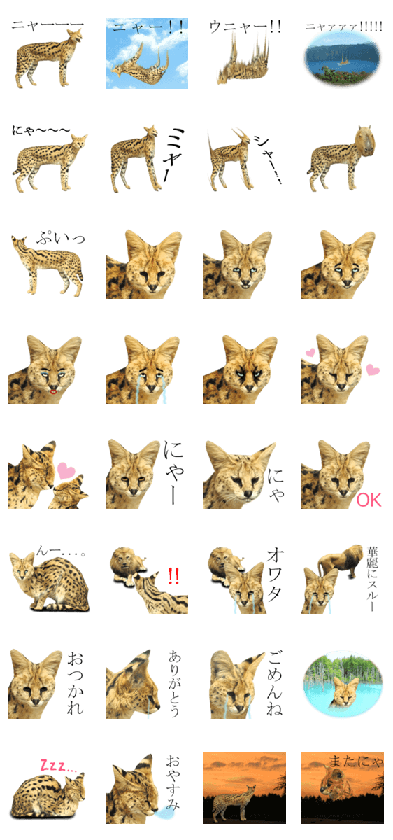 実写(写真・画像)を使用した可愛くてシュールで日常で使えるシンプルなサーバルキャットのスタンプです。