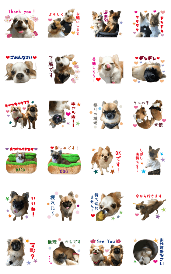 実写版☆チワワの甘えん坊MARO&やんちゃなCOOの楽しいリアルスタンプです☆