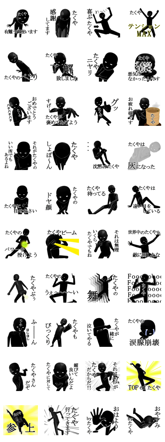 たくやのタクヤによるたくやさんの為のスタンプです。比較的使いやすいタイプのスタンプです
