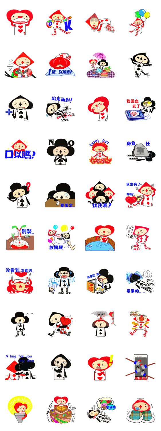 Here use poker four suit to create 4 cute characters, to show many of the life often face of the funny mood portrayal, come to join!