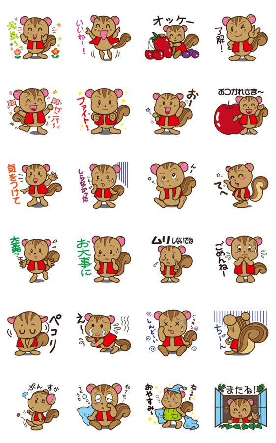 かわいいシマリスのスタンプです。 日常的によく使う言葉を集めました。
