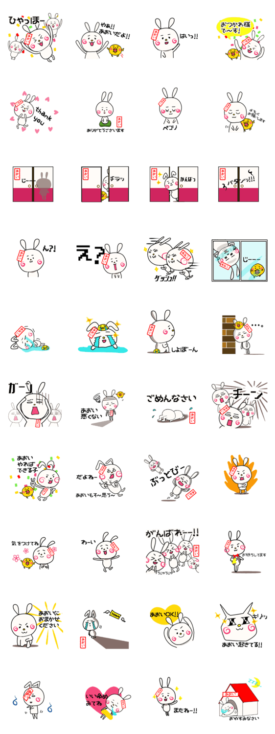 全国のあおい専用スタンプです!元気いっぱいたまにシュールなうさぎさんwithペットのひよこさん!ハンコ入りで使いやすい!あおいさんへのプレゼントにも最適です!