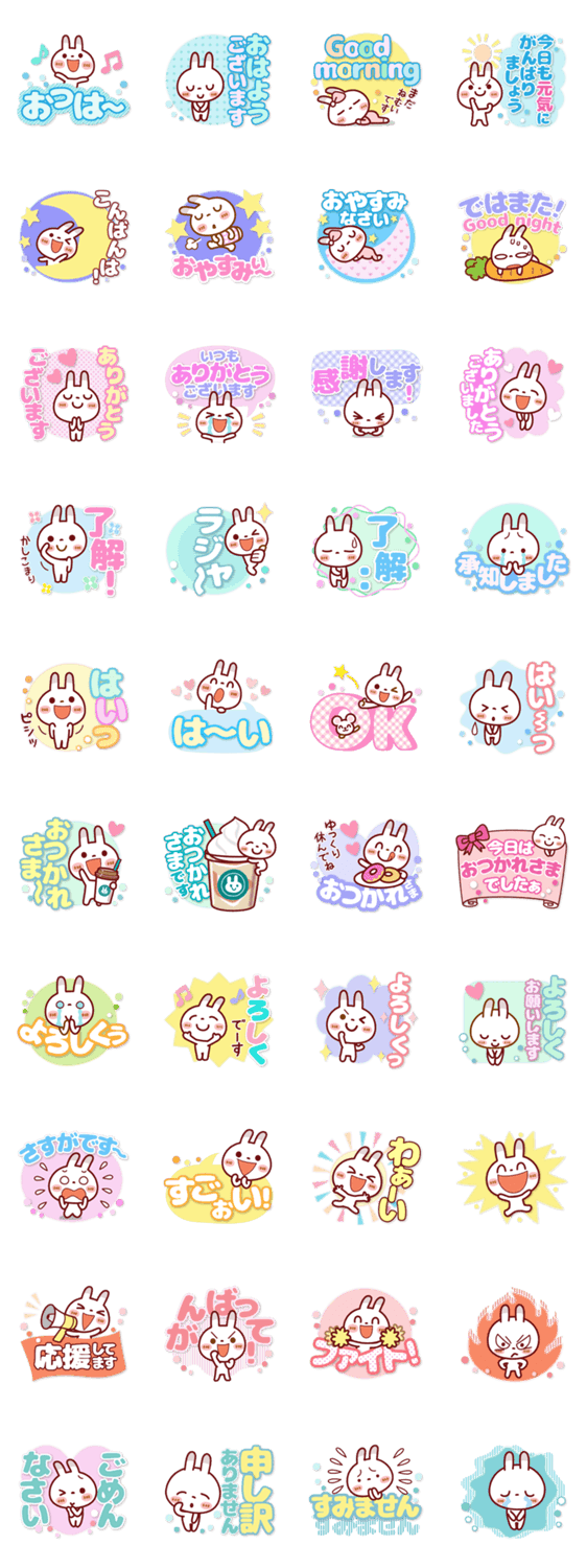 ブチうさぎ「でか文字」シリーズの基本セットです。本当に伝えたい微妙な気持ちを上手く楽しくを伝えましょう!