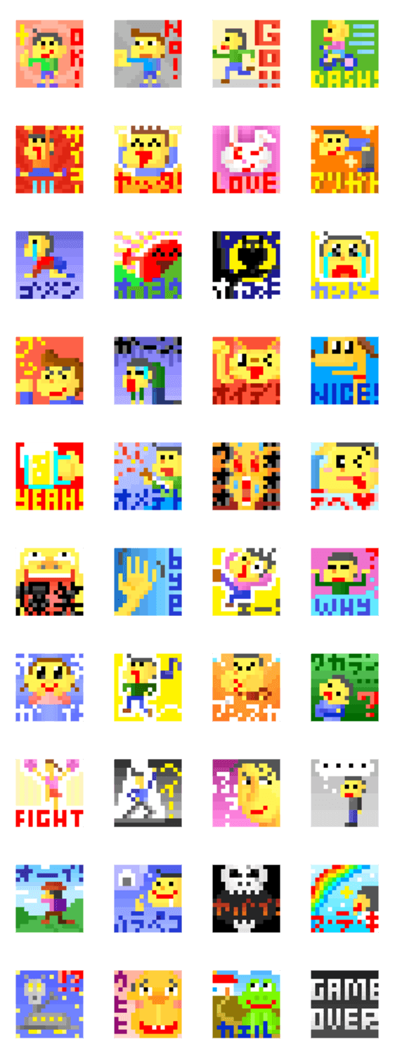 全てのスタンプが16×16のドット数で描かれた、ドットの限界に挑戦したレトロなスタンプ!