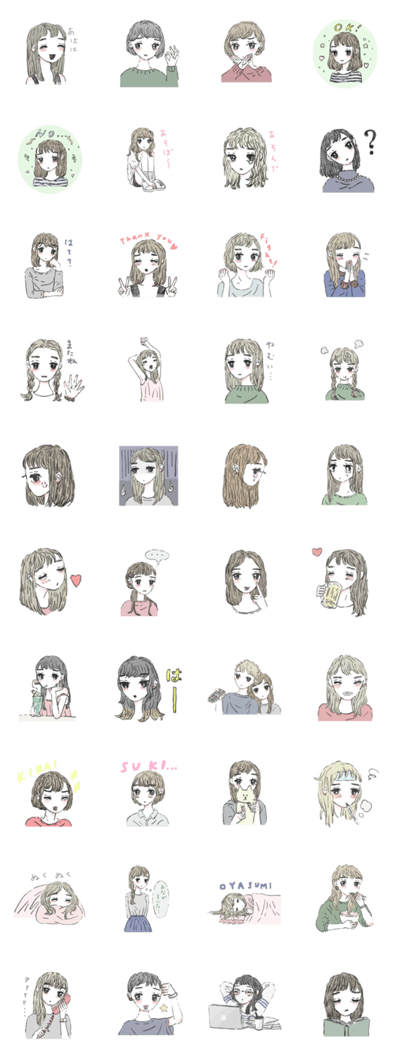 大島智子が描いた女の子たちのスタンプです。