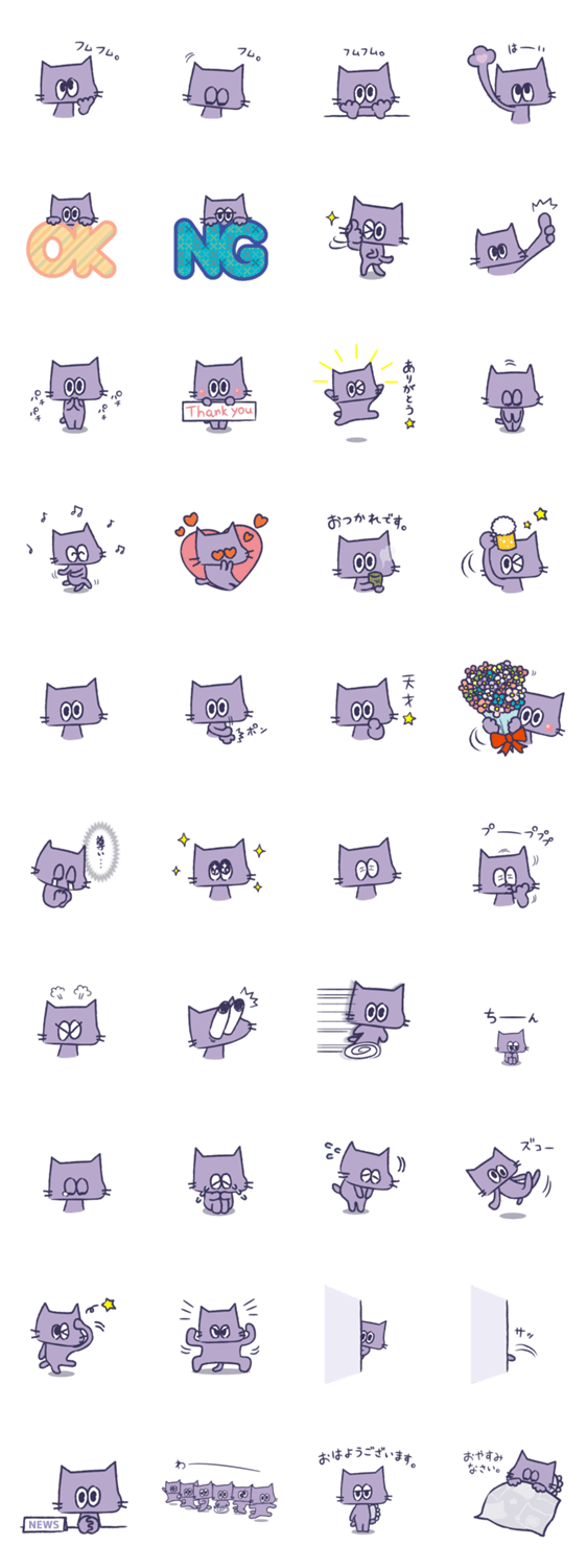 あいづち上手なネコみたいなニャンコ、「フムフム」のスタンプ。 セリフは少な目で、日常に使いやすいスタンプです。