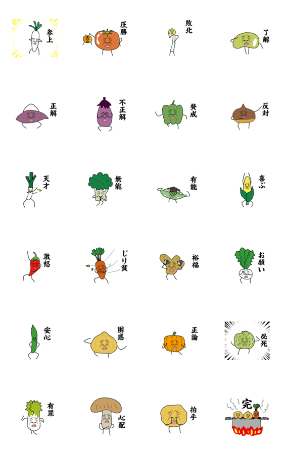 こわもて(強面)な、動く野菜たち -LINEスタンプマニア