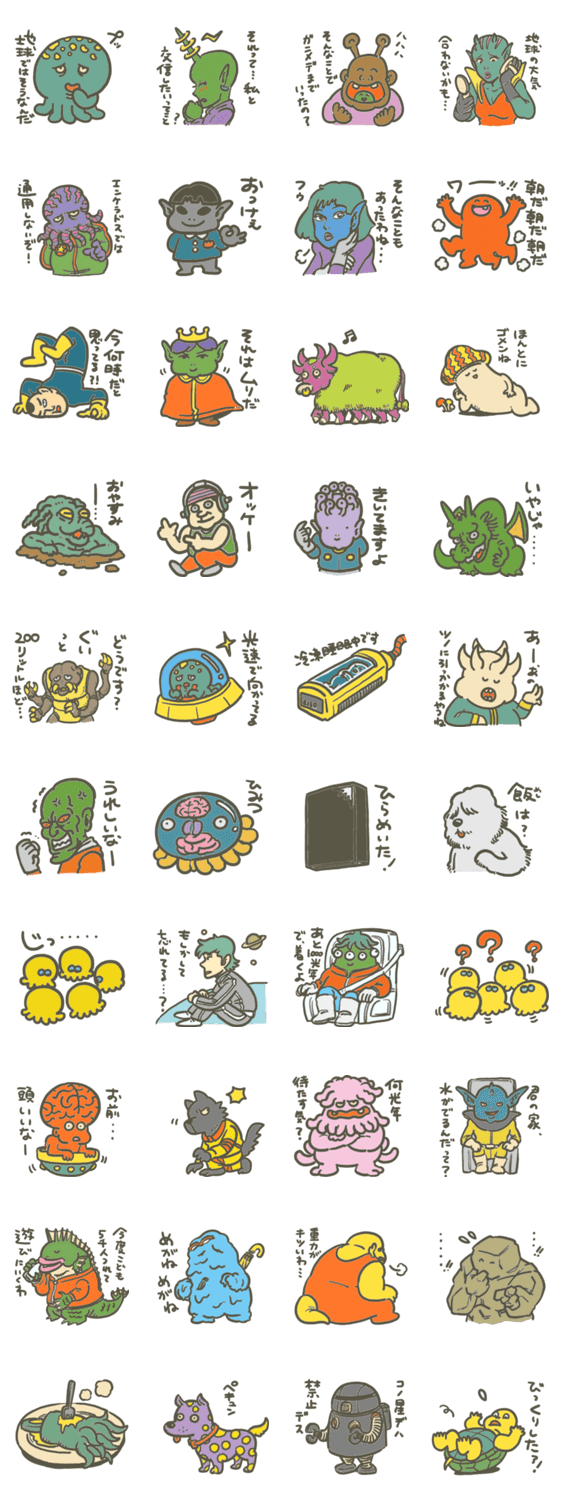 宇宙人が地球に来た時に使える、グローバルを超えた宇宙的な交流に使えるスタンプです。もちろん、地球人同士でも使えます。