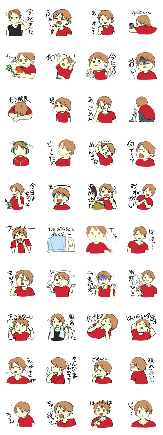 めんどくさがり屋で意外と繊細な男の子のゆるいスタンプです。なかなかやる気が出ない、すぐ疲れてしまう現代人のあなたへ。