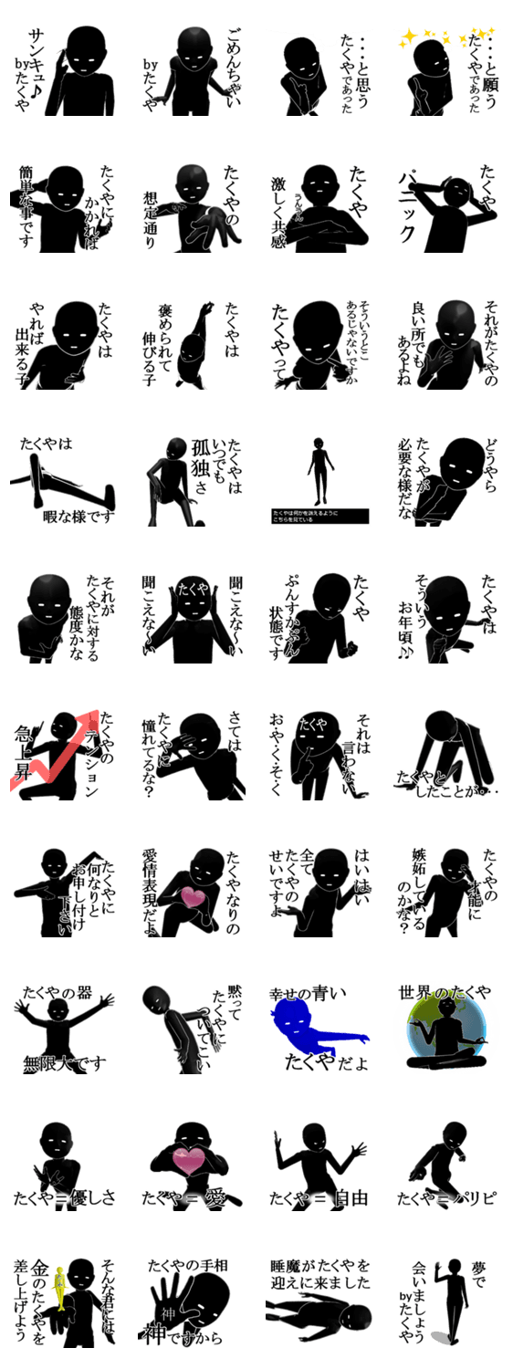 たくやさんのタクヤさんによる、たくやさんの為のスタンプ。若干癖が強いめですが使いこなしてやって下さい