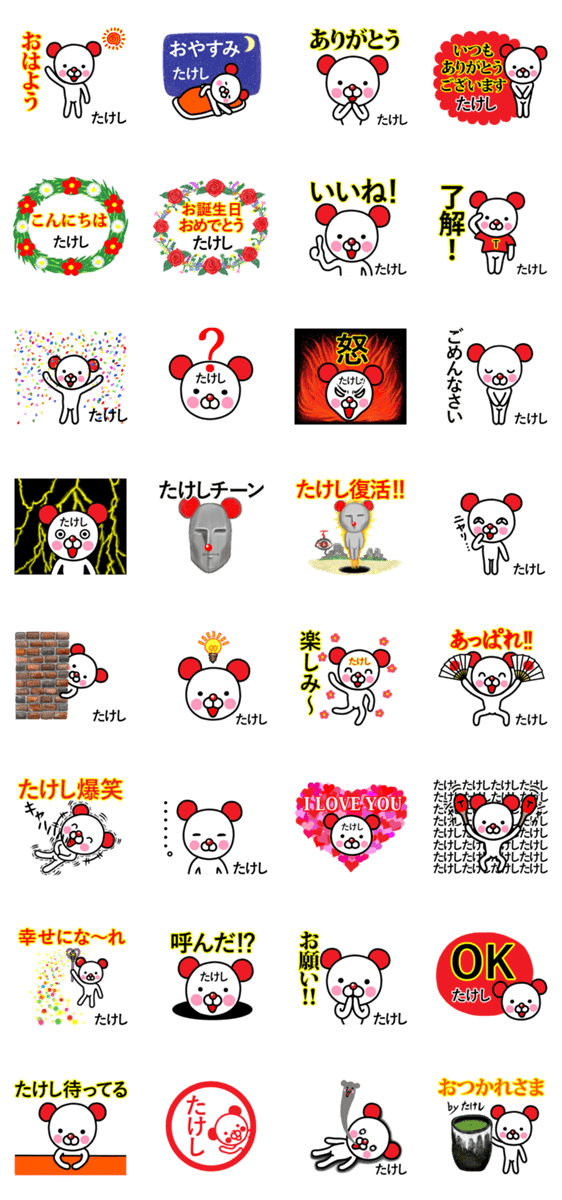 全国のたけしさん、たけしくんのための名前スタンプです。プレゼントにもオススメです。