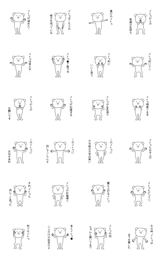 クマのイトゥは、伊藤さんや伊東さんが使う動くスタンプです!いとうでもイトウでもなく、今風に『イトゥ』と表現することでスタイリッシュに使いこなすことができます!