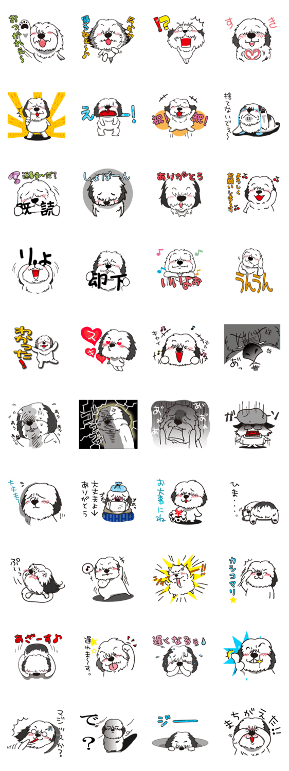 ムク犬ポーさんの日常的喜怒哀楽スタンプです。