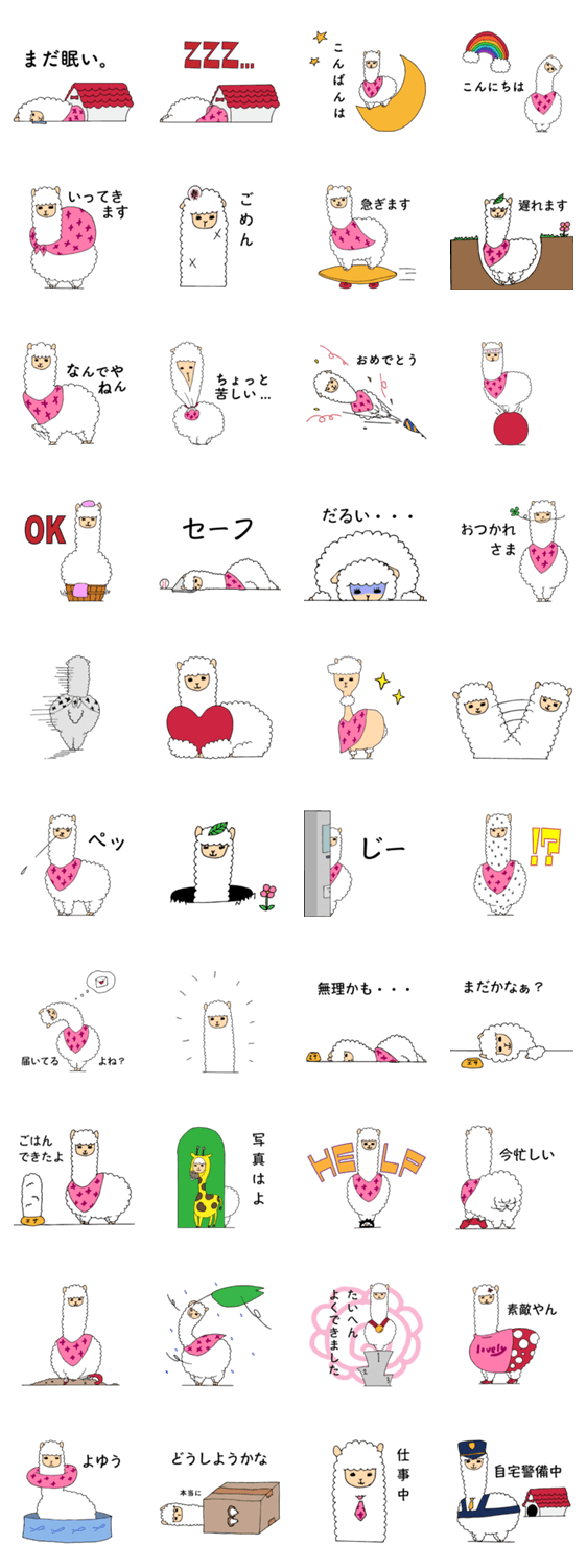 日常会話で飽きずにずっと使える、ユルく!可愛く!たまにシュールなアルパカさんです。恋人や親友、ネトゲ友達など幅広くどうぞ。