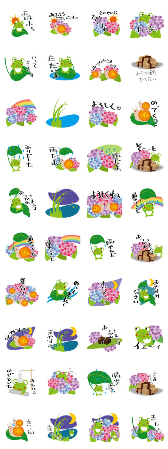 6月限定で使えそうな絵柄にしました。 カエルやあじさい、蛍など季節感あふれるシリーズです。
