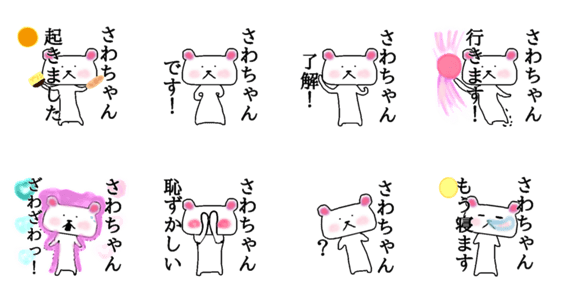 「さわちゃん」が使うくまスタンプ、基本セット。Sawachan、サワちゃん、沢子、大澤、大沢、澤、沢、佐和、佐羽さんなどに。