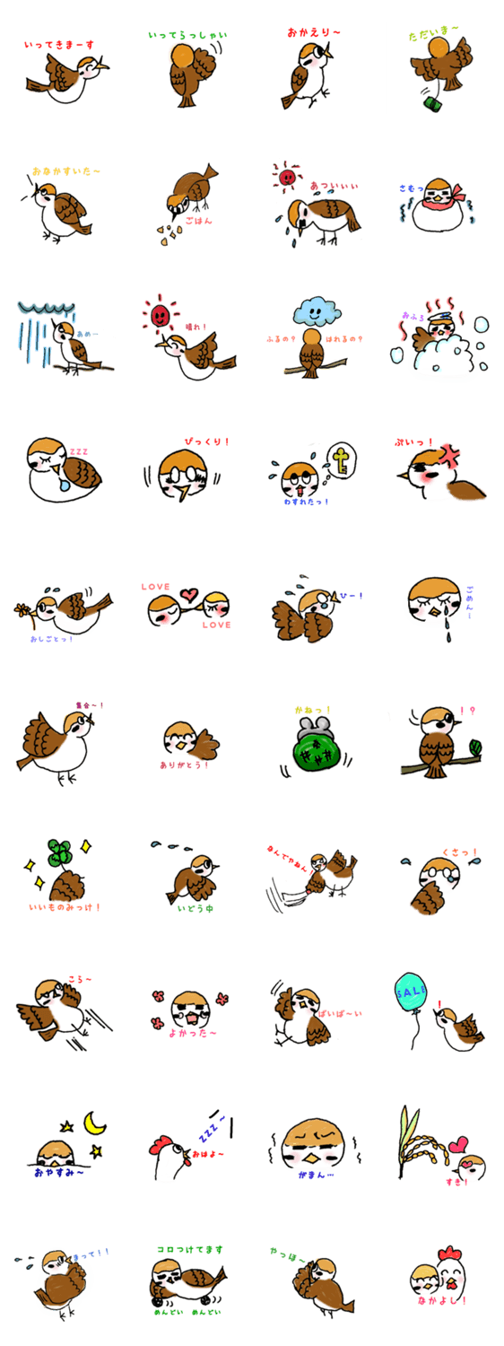 わが家のいそうろう、スズメの「ちゅんきち」をスタンプにしてみました。あなたのキモチを「ちゅんきち」が、ほのぼのお届けします。