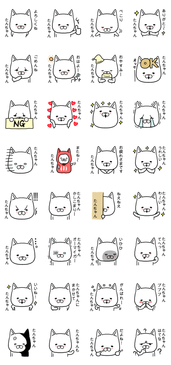「たんちゃん」のためのスタンプです。「たん」さん、「たんげ」さん、「たんの」さん、「たんじ」さん、「たんべ」さん、「たんだ」さん…全てのたんちゃんへ。