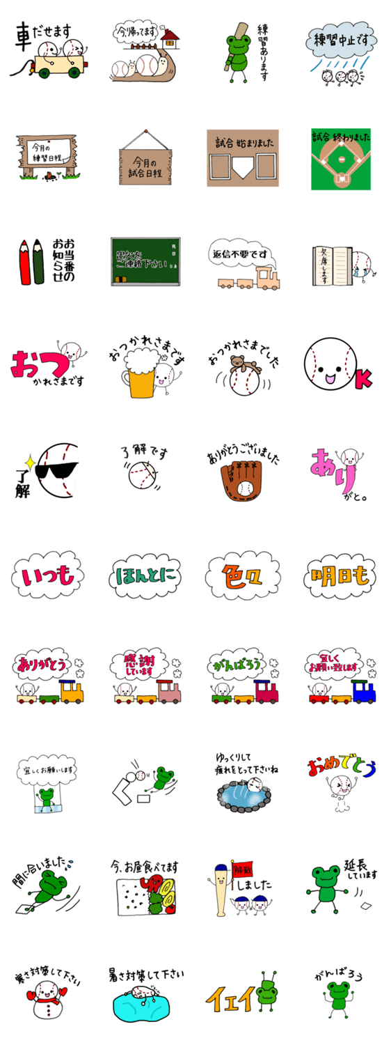 少年野球&ソフトを頑張っている子ども達を応援するママ(母)の為のスタンプ第2弾です。子どもの送迎、試合結果、練習の有無等、親同士の連絡に使いやすいスタンプです。